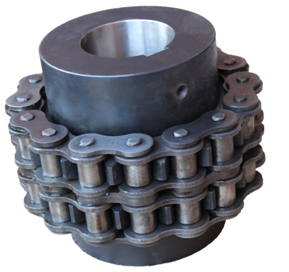 Acoplamento de corrente consiste em duas engrenagens e uma extensão de corrente de rolo dupla. É muito simples e flexível