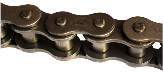 Correntes forjadas são mais densas e resistentes devido ao forjamento a quente, enquanto as rodas das correntes possuem dentes que se encaixam precisamente na corrente para uma transmissão de energia eficiente.